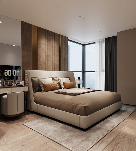 Phòng ngủ được thiết kế mang đến cảm giác ấm cúng và thư giãn. Phòng master có giường cỡ lớn, hệ tủ âm tường hiện đại cùng cửa sổ lớn giúp tầm view rộng giúp phòng ngủ rộng rãi thoáng mát.